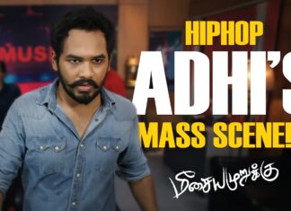 Watch HipHop Adhi's powerful reply in "Meesaiya Murukku," a compelling scene that showcases his resilience and determination.