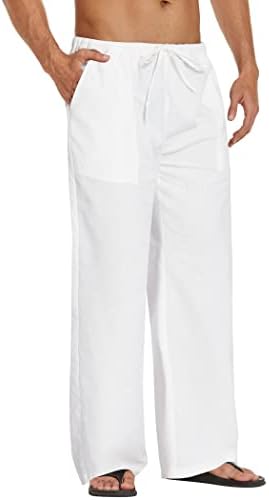 COOFANDY Mens Linen Drawstring Pants Elastic Waist Lightweight Trouser Casual Yoga Summer Beach Pant