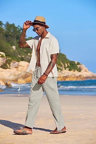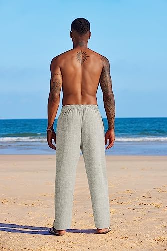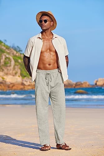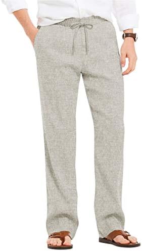 COOFANDY Men’s Summer Beach Linen Pants Lightweight Casual Elastic Waist Drawstring Yoga Trousers