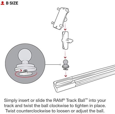 Designed for track mounting systems including the RAM Tough-Track; includes 1″ B size rubber ball